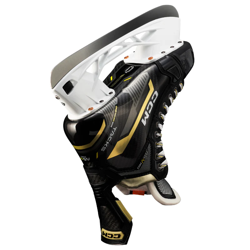 Show your opponent the game is yours to win with the unmatched TACKS AS-V PRO ice skates. Starring CCM's exclusive one-piece boot Power technology, premium carbon composite material, and game-changing Powerflex tendon, these hockey skates are all about performance and power. Multi-density foam pads wrap anatomically around your foot for customized fit and incomparable comfort, while the Game Ready Fit makes breaking-in easy.